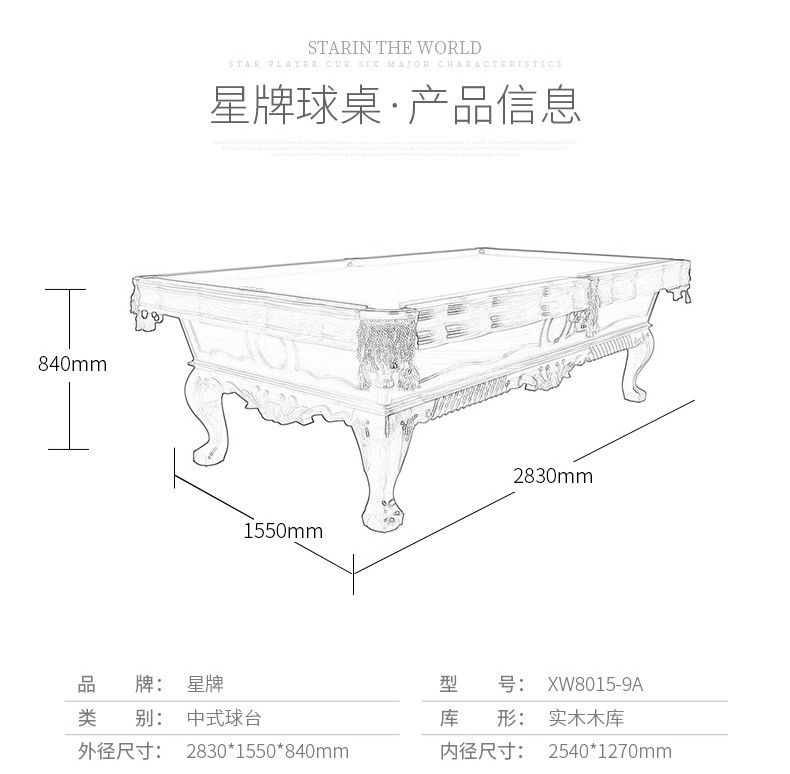 - 星牌 XW117-9A 美式臺球桌