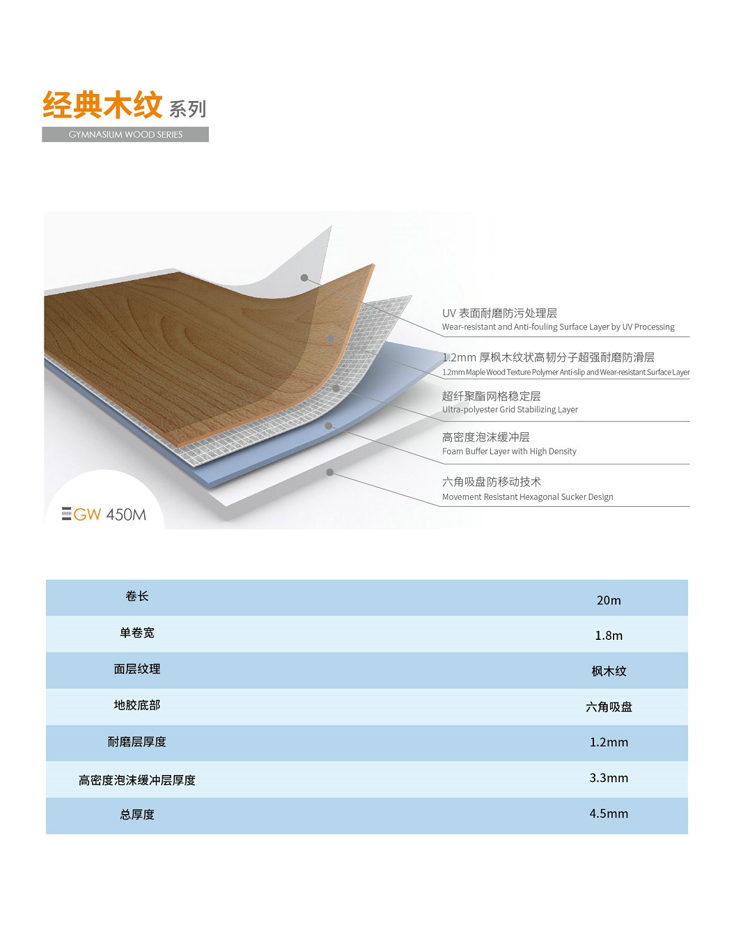 天速綜合地膠籃球場(chǎng)地膠經(jīng)典木紋系列GW 450M楓木紋