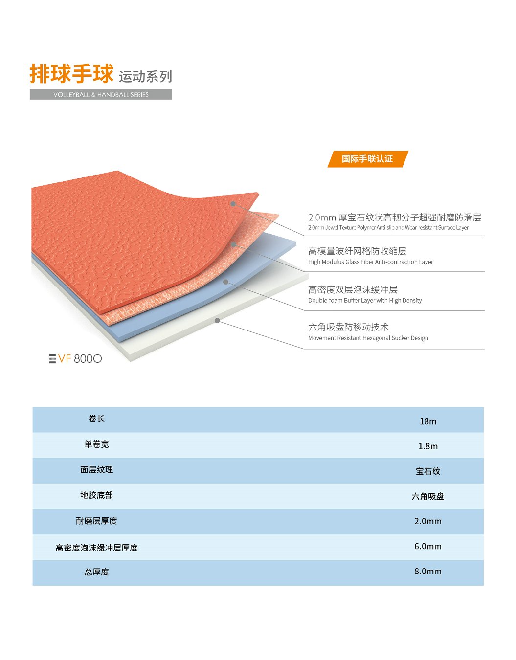 天速排球手球運(yùn)動(dòng)系列地膠 VF 800O橙色