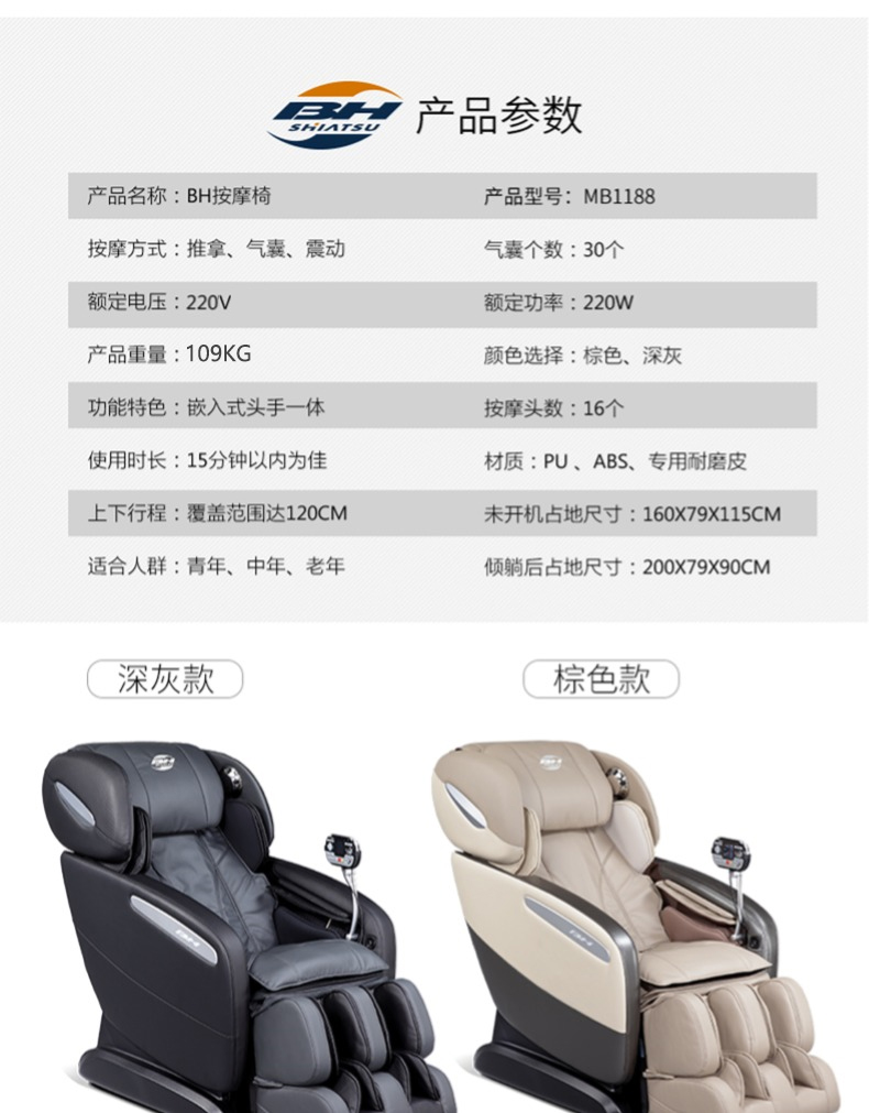 健身器材 > 健身器材大全 > 按摩保健器材 > 按摩椅 > 必艾奇BH智能零重力按摩椅MB1188